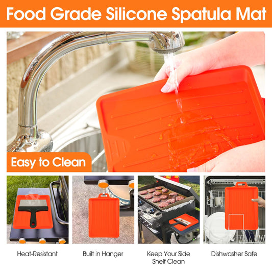 Upgraded Griddle Cleaning Kit for Blackstone 18 Pieces Flat Top Grill Accessories Cleaner Tool Set with Scraper, Heat-Resistant Silicone Spatula Mat with Hanger, Grill Brick, Scouring Pads