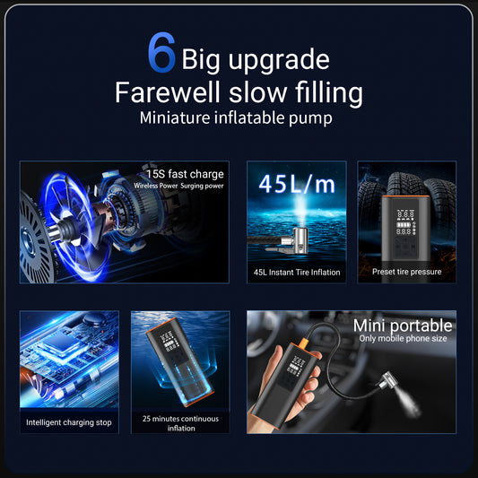 Cordless Tire Inflator Portable - 150 PSI Digital Pressure Gauge & LED Light, for Car Tires with Automatic Shutoff,USB Air Pump,Inflator Pump