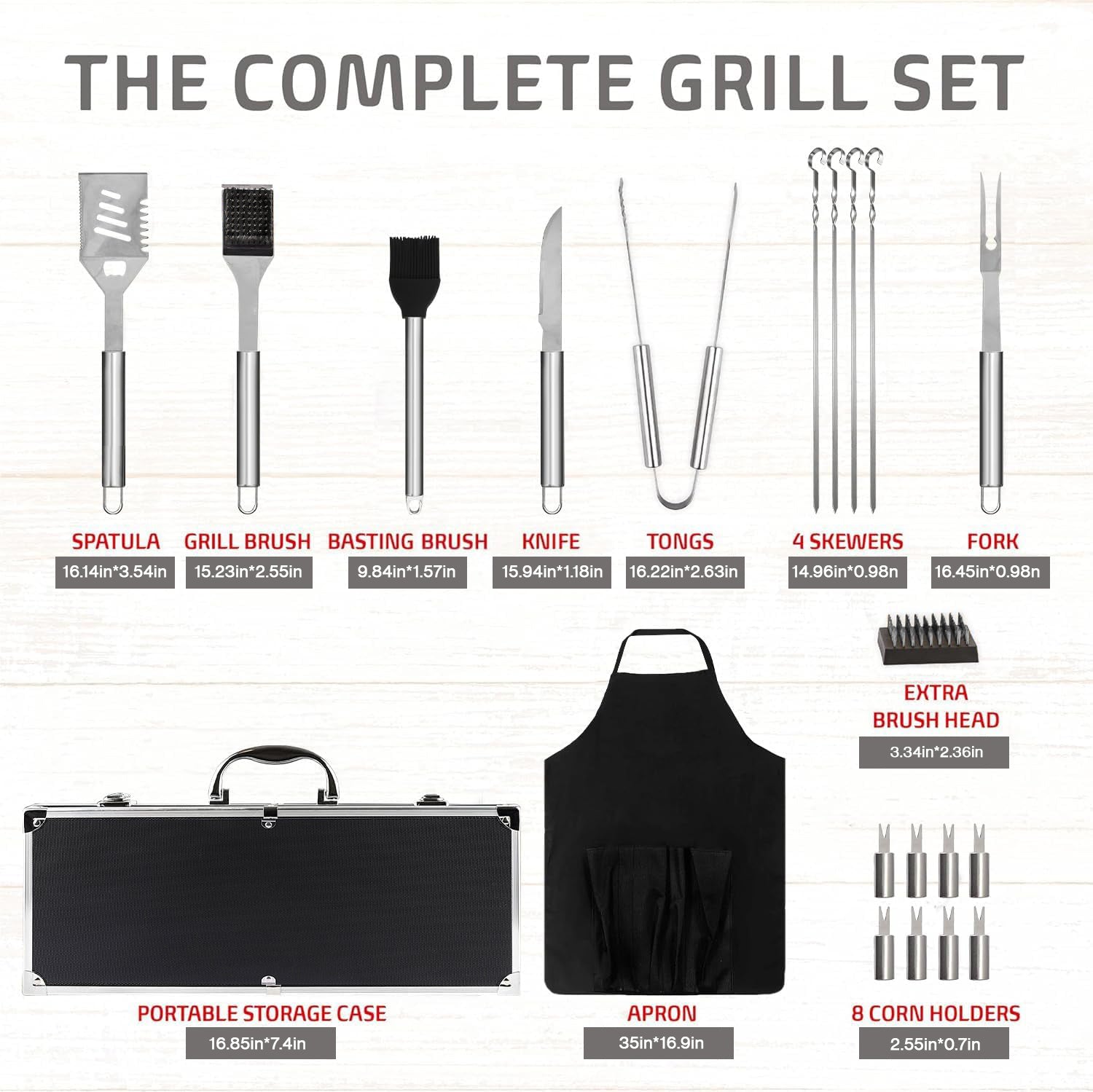 BBQ Grill Accessories Set, 21Pcs Stainless Steel Grill Tools Grilling Accessories with Aluminum Case